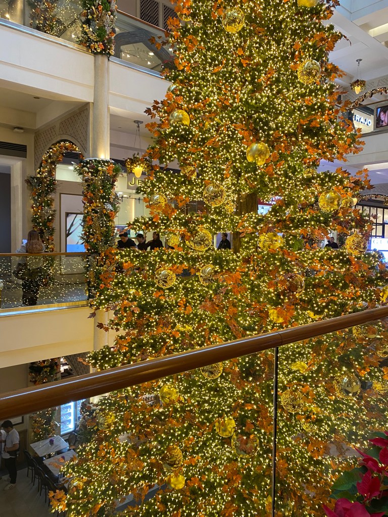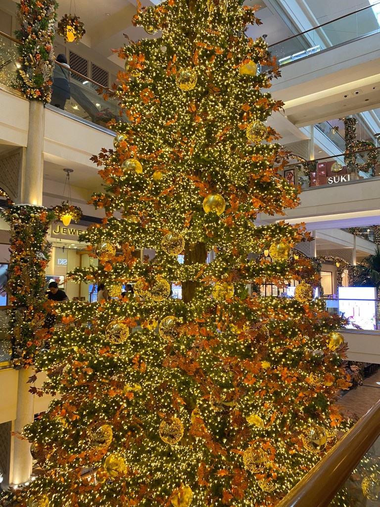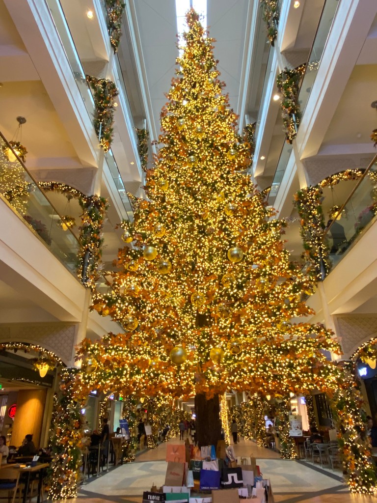 One such mall always features lots of gold in their theme and so does their giant Christmas tree. All that golden glow and shiny sparkles with the subdued indoor lights make the whole atmosphere feel cozy and warm – a very inviting atmosphere during the colder season.